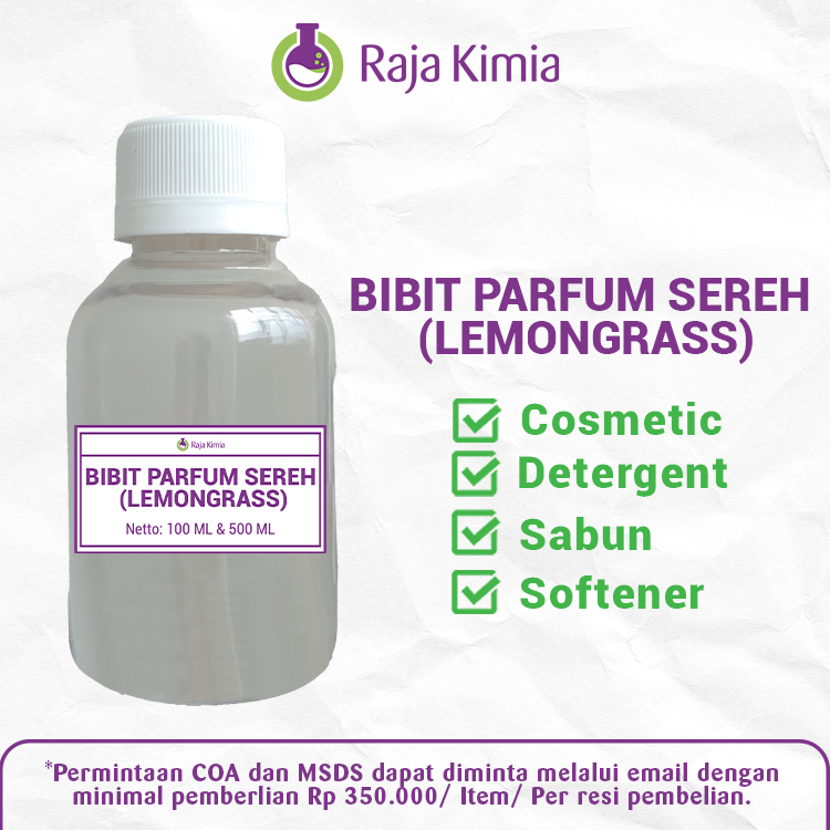 Bibit Parfum Sereh (Lemongrass) adalah bahan dasar wewangian dengan aroma khas sereh yang segar, lembut, dan menenangkan. Terbuat dari ekstrak sereh pilihan, produk ini menghadirkan kesan natural, bersih, serta memberikan efek relaksasi.